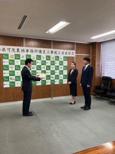 このたび、弊社が施工を担当いたしました「久室ほ場整備第3期工事」が、岐阜県可茂農林事務所様より優良工事施工者として表彰されました!!